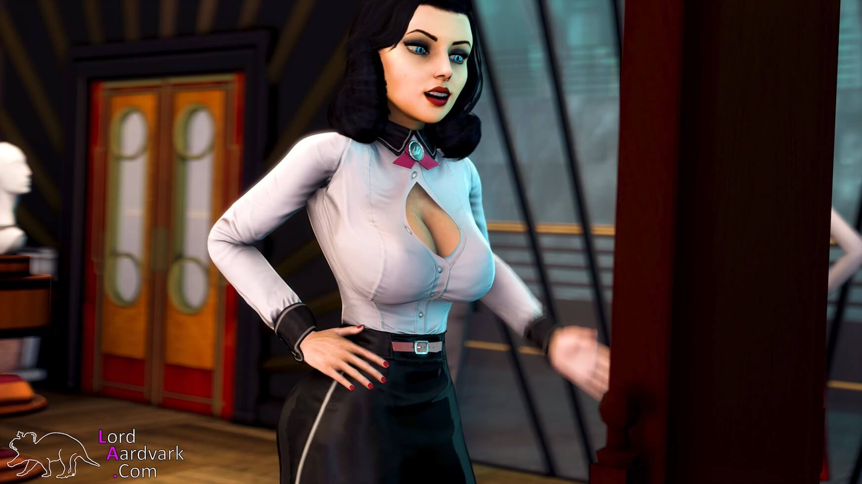 LordAardvark 26 ноября 2019 года выпустил свою новую хентай SFM работу под названием "No Gods, No Kings". Что интересно автор работал над данной SFM шесть лет назад и решил завершить начатое лишь в 2019 году. Главная героиня хентая Элизабет (тёмной версии) решила немного прикупить новых платьев. Однако у неё совершенно нет денег и девушка решает соблазнить продавца и как следует обслужить его...